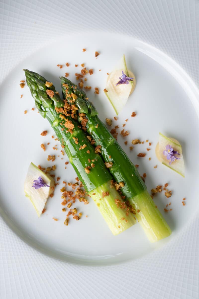 La version « Printemps » – légumes primeurs, asperges, petits pois, fraises et herbes fraîches, accompagnés d’agneau tendre et de poissons délicats, relevés par des notes vives et florales – s’inscrit dans l’éveil des « Quatre Saisons » qui rythment les changements de carte de La Robe, restaurant étoilé incontournable en Vendée.